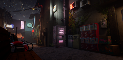 For an environment design class, I was tasked with creating a beach-themed Japanese bar concept called Golden Gai. My main responsibilities was 3D modeling and texturing assets around the environment, while also contributing significantly to the fictional branding to give the project a unique and creative flair. To ensure the bar stood out, I developed original designs from scratch, utilizing my skills as a graphic designer and 3D art student, which allowed me to incorporate distinctive branding elements that enhanced the project's authenticity. My goal was to blend traditional Japanese aesthetics with modern beach vibes, creating a space that felt both genuine and innovative. The use of my own designs and the redesign of some posters were crucial to me, as I aimed to showcase my creativity within this small team of 6 students project completed in just eight weeks.